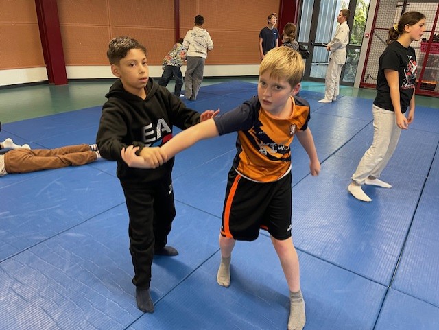 Pour les attaques au couteau, sabre, bâton, on utilise des armes en bois (sans danger) pour l’entraînement.